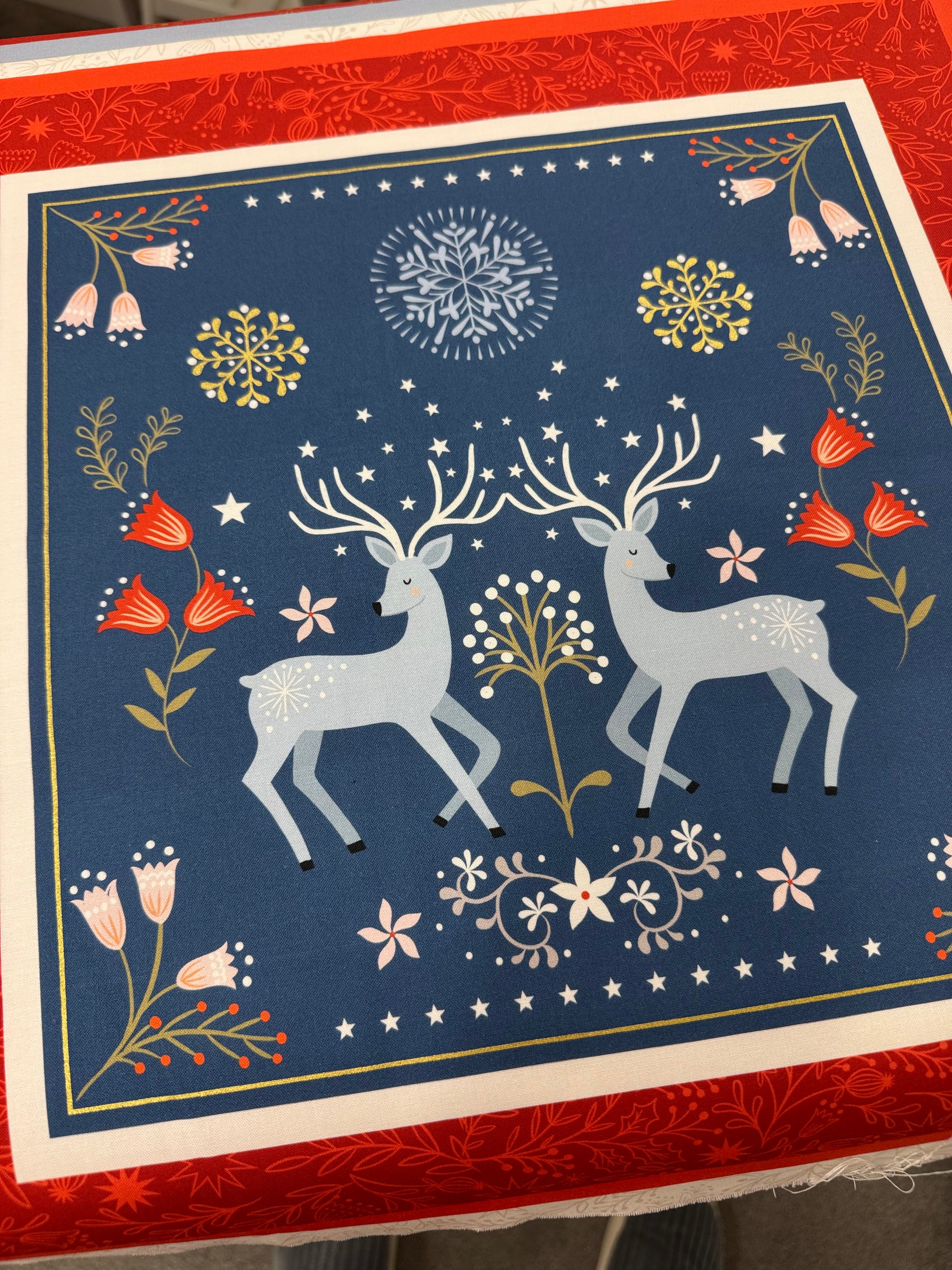1 yard panel with 4 designs - for you to sew up 4 stunning Christmas cushions.