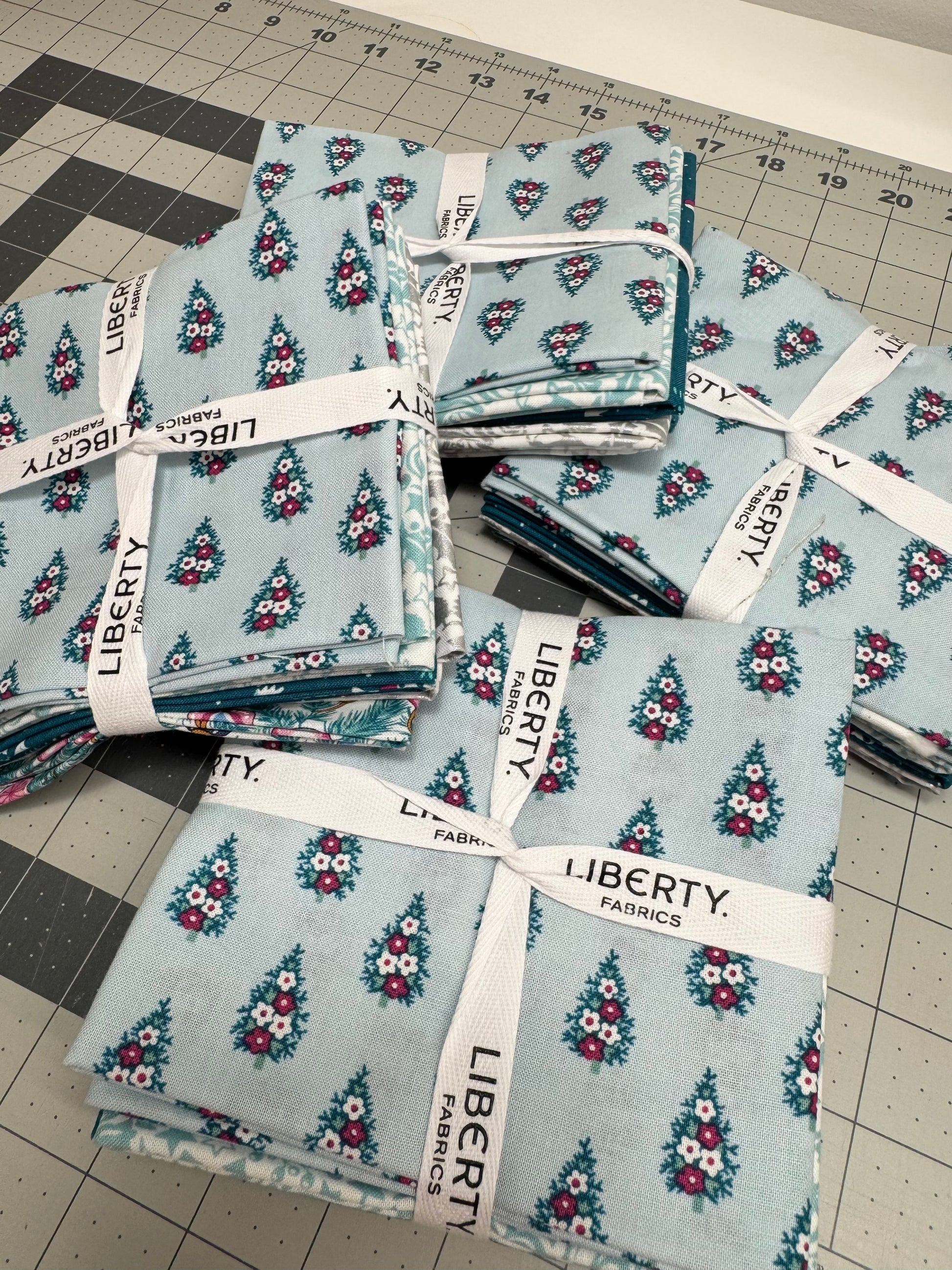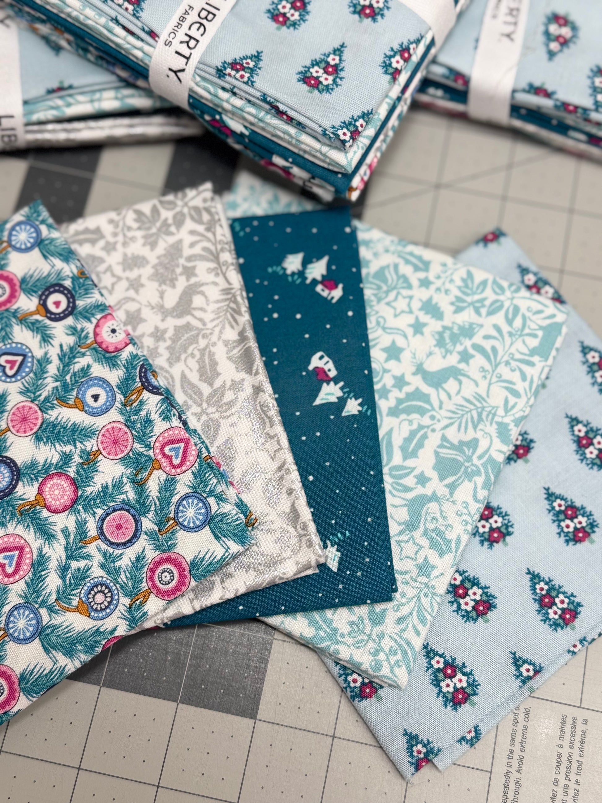 Liberty fat quarter bundle of beautiful blue Christmas fabrics.
