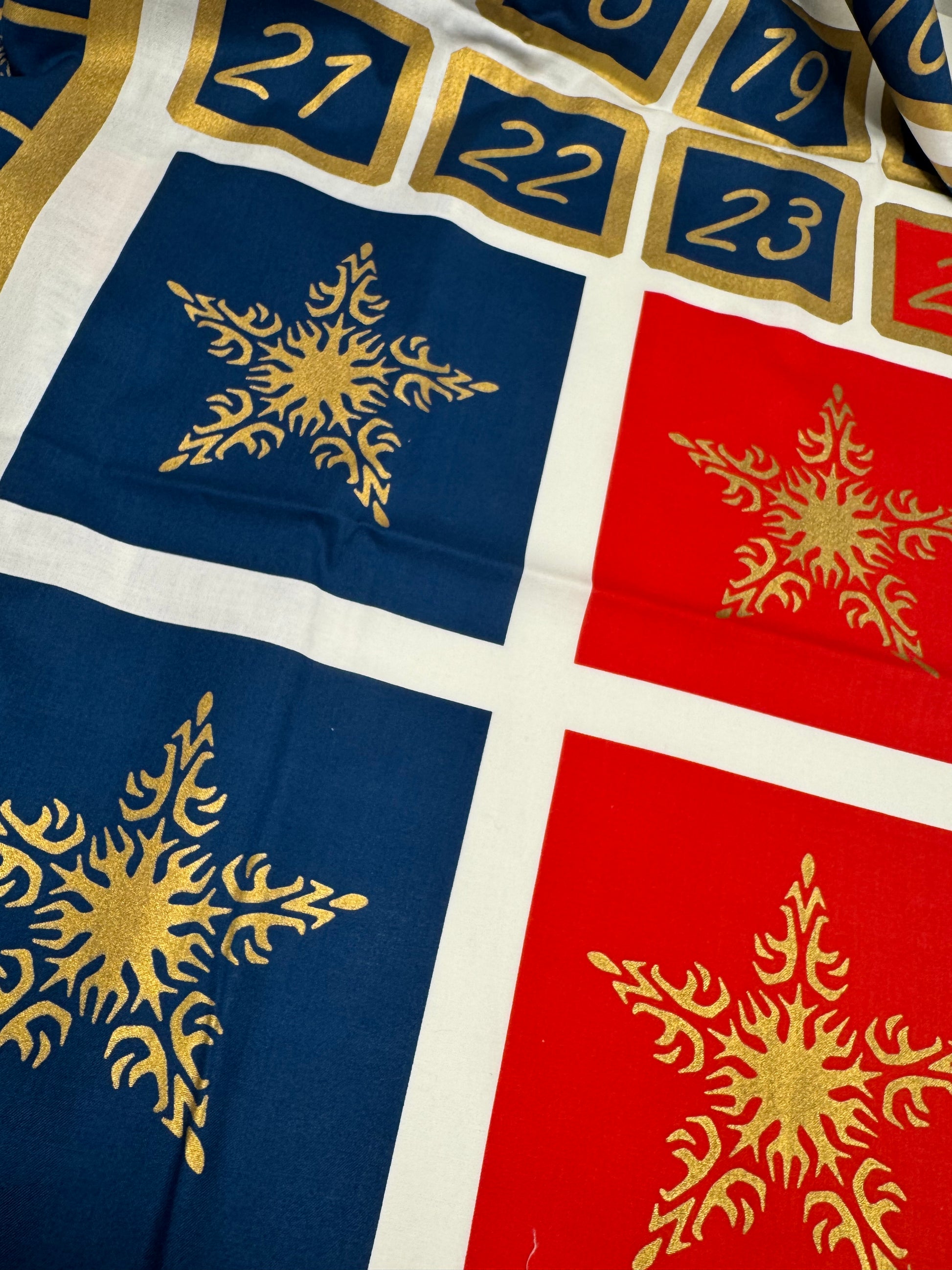 Santa on his Sleigh Christmas Fabric Advent Calendar Panel Blue and Gold